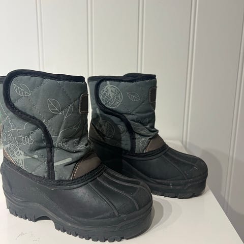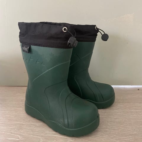 Reflex barnestøvler i størrelse 21. Kjøpte dem fordi de virker veldig lette mtp at sønnen vår akkurat har lært seg å gå. Støvlene har en solid, vanntett ytre og en myk, isolerende innside som gir varme og komfort. Egnet for bruk i våte og kalde forhold.