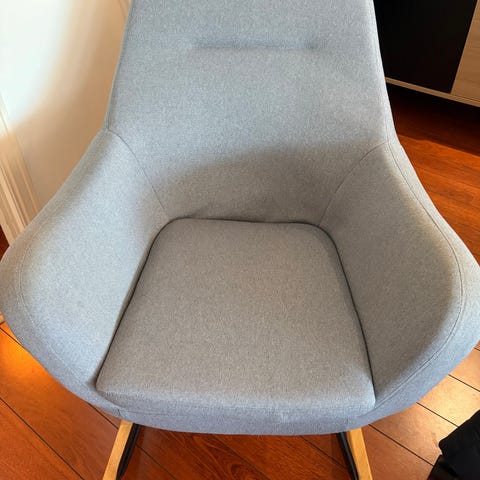 Gyngestol fra Jysk (navn: Nebel stol og kan bruges som ammestol)