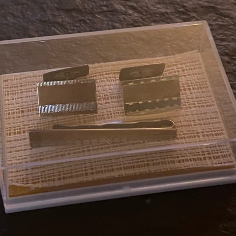 Ubrukte mansjettknapper i gull fått som gave i den tiden jeg jobbet for Statoil. Disse er i gull med følgende originalt etui. Det er gullstempel på siden. Selges 11000 kr el. bud.