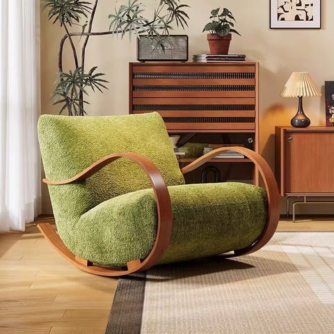 Selger disse stilrene single rocking chair / gyngelenestol som passer perfekt i stue, soverom eller lesekrok. Kombinerer ren moderne look med klassiske, litt middelaldersk-inspirerte detaljer – solid, komfortabel og med gyngemekanisme (tilting) for skikkelig avslapning.