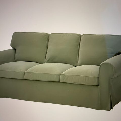 Pent brukt Ektorp 3 seter grå sofa og puff selges.
