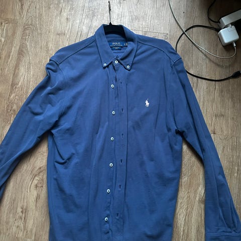 Selger min pent brukte Ralph Lauren skjorte i fargen Navy Blue.