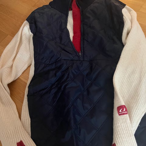 Blå Ulvang ullgenser med høy hals, selges for kr 350. Herremodell i str s.