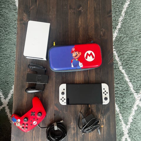 Selger en Nintendo Switch OLED (hvit) i svært pen stand, kjøpt desember 2024. Konsollen er brukt kun 5–10 ganger og fremstår som tilnærmet ny.