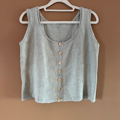 Strikket topp i lin og bomull (80% bomull, 20% lin). Genseren har en enkel strikket tekstur og er løs i fasongen. Passer en str M/38/40.