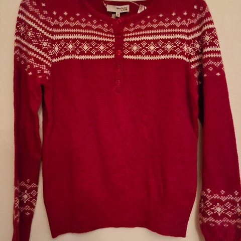 Klassisk ribbestrikket genser, 55% akryl, 30% nylon, 15% mohair.