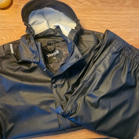 Skofus Regnjakke m/ bukse + sommerklær str 7-8 år