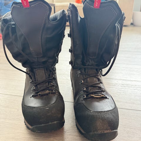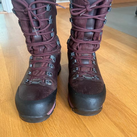 Alfa Bever 10w Perform turstøvler i brun skinn for dame, størrelse 40. Støvlene har høy ankelstøtte med solide snørelukkinger og Vibram yttersåle for godt grep. Egnet for turbruk, jakt og utendørsaktiviteter.