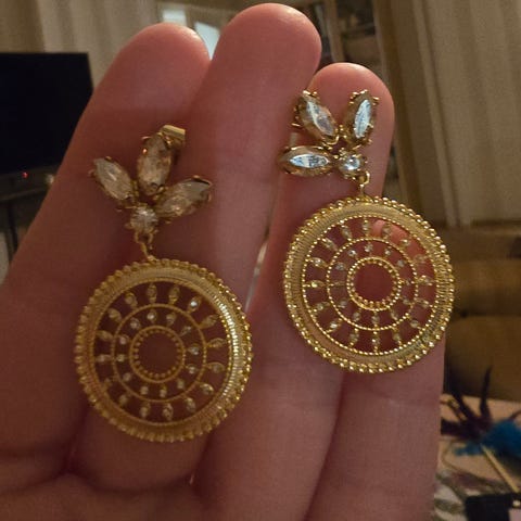 Aldri brukt. Har for mye, rydder og håper noen kan ha glede av dem. Selger også matchende ørepynt.