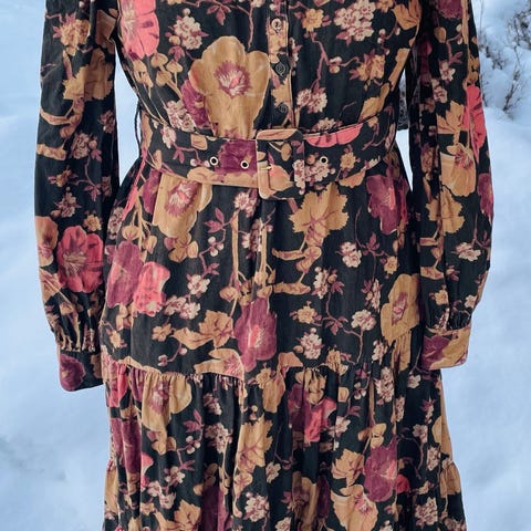 byTiMo Hverdagskjole i størrelse XL, flerfarget med blomstermønster. Laget av bomull, egnet for kvinner. Kjolen har lange ermer og dekorative detaljer i hvit blonder.