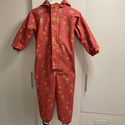 Merket med str 134, men passer nok bedre 122/128. Ermene er lagt opp. Et hull bør repareres.