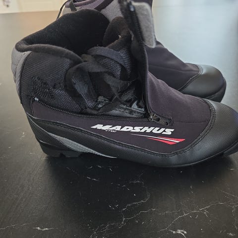 Madshus Sport Junior skisko i størrelse 34 selges! Skiskoene har en kombinasjon av svart og sølvfarget materiale med glidelås foran for enkel påkledning. Sålen har god profil for feste og stabilitet. Egnet for barn og ungdom som står på ski.
