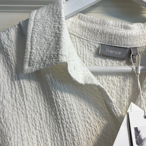 Enkel og lett sommerkjole. Merke ukjent. Rød blomst på kvit bunn. Passer fint en M da den ikke er stor i størrelsen.
