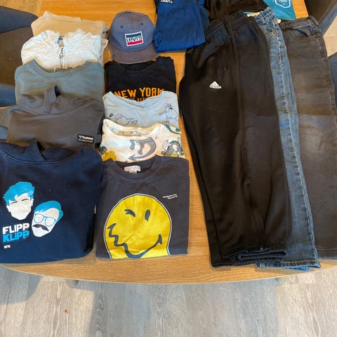 Telenor fleecen og shortsen (str. 140 men str. mindre er 128 så de har ikke noe imellom) er brukt kun et par ganger. Den fleecen har vi slitt ut mangen av den er kjempgod og holdbar. Denne ble ikke brukt før vokst ut av størrelsen. Fin hettegenser med Stoke city logo. Står 10 år inni men liten på størrelsen og lite brukt fordi den var nesten for liten for vår 10 åring da vi fikk den. Hummel treningstopp. New York caps og PlayStation myk bomullslue. Resten har jeg ikke priset så følger med gratis da det er litt bruksmerker. Det jeg har priset er i fin stand.