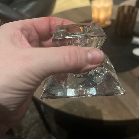Hadeland Glassverk glassvase i lilla farge. Vasen har en unik og fin form.