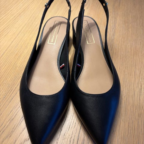 Stilig pumps Tommy Hilfiger str 38. Skoene har en blank overflate med en kombinasjon av mørk grønn og svart farge. Hælene er høye og solide, egnet for formelle anledninger eller hverdagsbruk hvor en mer elegant sko ønskes.Lite brukt.