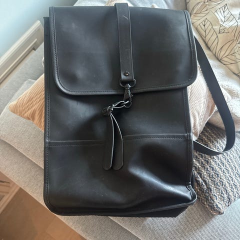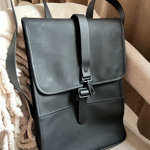 Selger en svart Rains-sekk som ikke blir brukt. Har brukt den til studier og hatt plass til Mac og bøker. Noe bruksmerker forekommer 😊