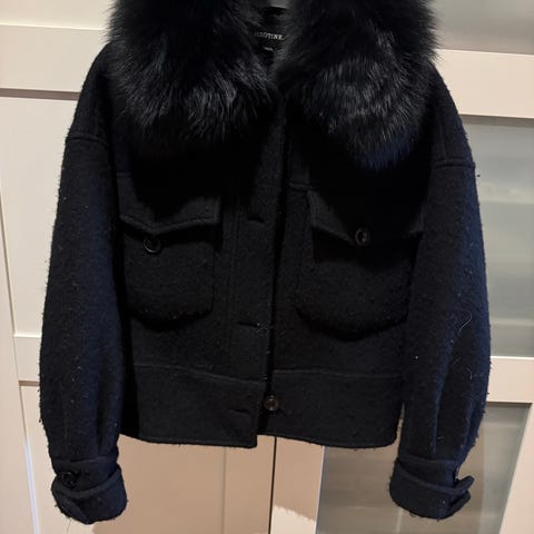 Pent brukt ull jakke fra Meotine, 100% ull og ekte pels