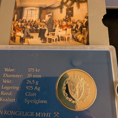 USA 1986 Halv Dollar mynt med motiv av Frihetsgudinnen og New Yorks skyline. Mynten er innkapslet i en beskyttende kapsel.