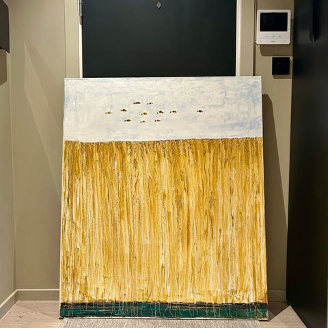Stort maleri med motiv av en elefant, 120x120 cm. Må hentes i Oslo.
