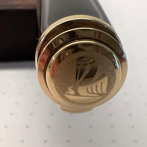 Pennens kropp er i svart lakk med 23 karat gullbelagt kant og klips.