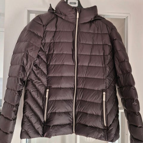 Peak Performance vinterjakke i dun for damer, størrelse L, men er liten så vil si det passer mer en M. Jakken er blå og laget med dun som isolasjonsmateriale, egnet for kalde værforhold.
