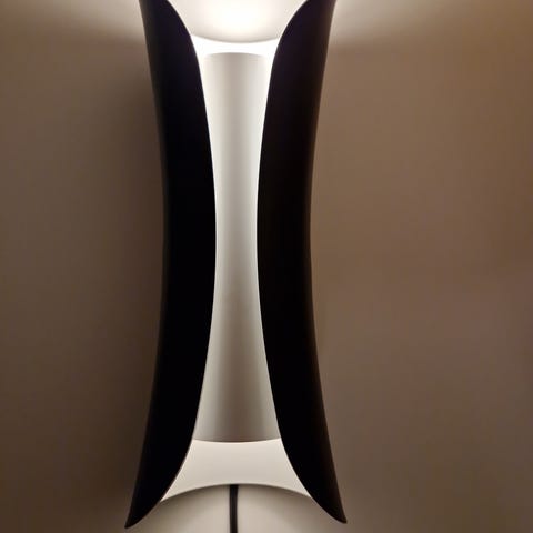 Selger to pent brukte vegglampe med hylle, svart. Kan brukes som nattbordshylle.