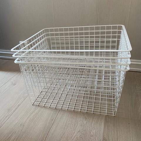 2 x Tripp trapp hylle med tre hyller + hvite kasser