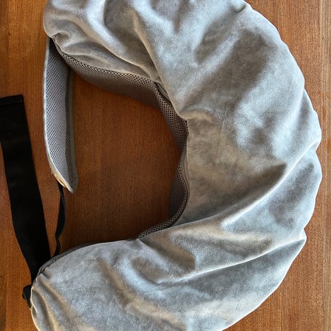 Sebra rund lekematte i ulike blågrå nyanser. 122cm i diameter, høyde: 1,5 cm. Nypris 899. Et par overfladiske riper, se bilder.