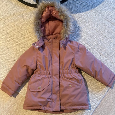 Nydelig fuskepels jakke til jente Str. 92. Pent brukt, ingen bruksmerker. Lys rosa. Med knappelukking.