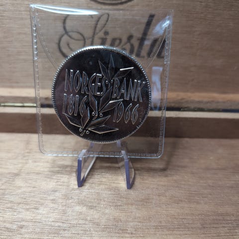 Jubileumsmedalje fra Norges Bank preget i samme vekt som en Sps fra 1819,
