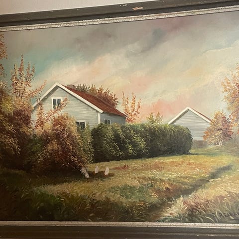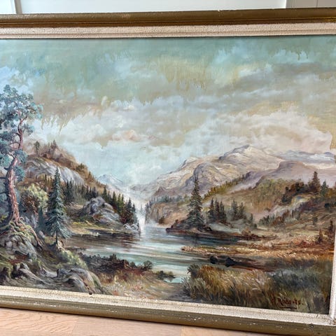 Øystein Melhus maleri med motiv av landskap. Maleriet har dimensjoner på 40x31 cm og er innrammet. Signert av kunstneren Gystein Melhus.