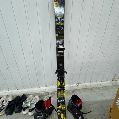 Line Honey badger 155cm selges da jeg ikke bruker dem lenger. Har vært brukt i 3 sesonger og er i grei tilstand. Er noen mindre riper under skia, men ikke noe som påvirker kjøreopplevelsen i noe særlig grad. De er brede, veldig lette og perfekte for parkkjøring. Skiene kommer med marker bindinger.