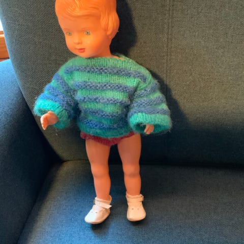 Dukke fra ca 1980- tallet . Svært populær i sin tid. 25 cm lang. Ingen bruksmerker. Ikke originale klær . Ren og fin .