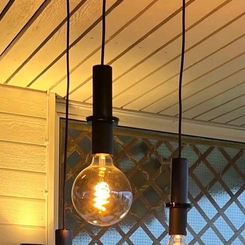 Taklampe fra Clas Ohlson. 1 år gammel. Selges med pærer 6 stk. Ny pris lampe 699 og pærer 149 kr stk. selges fordi den ble for stor i stuen vår.