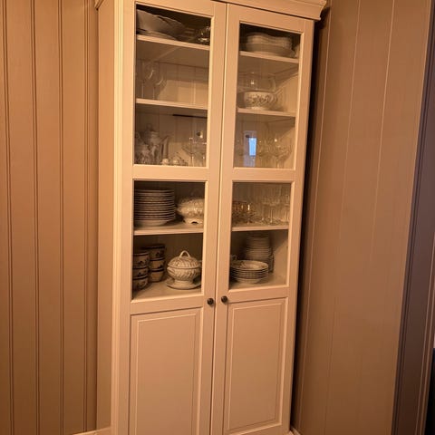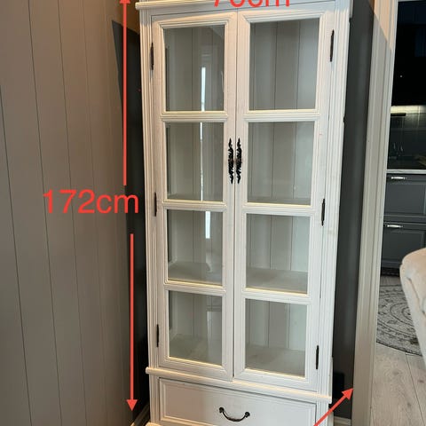 Vitrineskap fra Bohus kjøpt nytt av oss i 2020. Er godt brukt og har noen synlig merker. Se bilder. Skapet har blitt brukt til oppbevaring av glass og drikke.