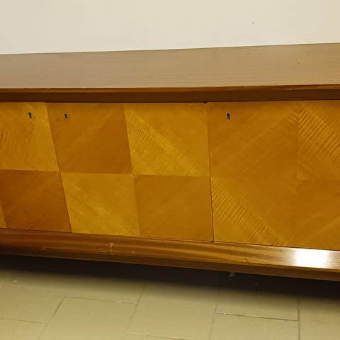 Stor, solid og tidløs innebygd bokhylle/skjenk i heltre selges. Dette er et påkostet møbel laget som fast innredning, men demontert og klart for ny bruk.