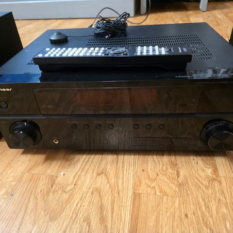 Bose lydforsterker med flere innganger og kontroller for lydjustering. Enheten har et utvalg av innganger inkludert RCA, antenne og andre tilkoblingsmuligheter. Designet for å gi lydforsterkning med mulighet for justering av bass, diskant og volum. Farge i grå/sølv.