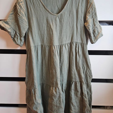 80% lin, 20% viscose. Lite brukt.