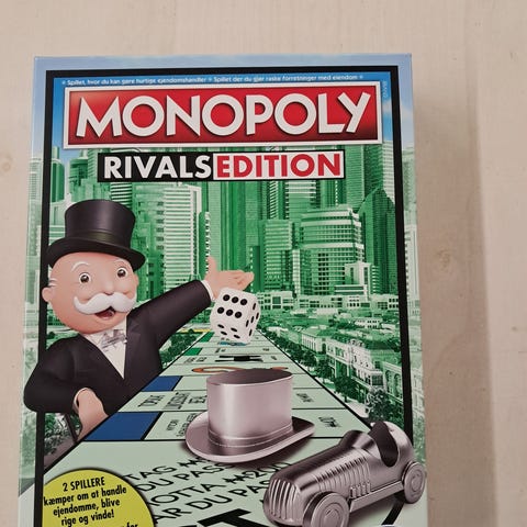 Hasbro Monopoly Rivals Edition brettspill. Inneholder spillbrett, spillbrikker, penger og spillkort. Passer for 2 spillere og anbefalt alder er 8 år og oppover.