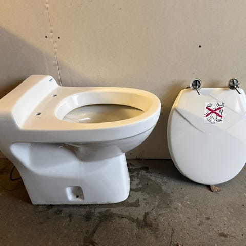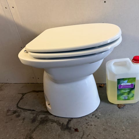 Pent brukt Jets gulvtoalett 59M for ikke innlagt vann og VTS controller med brukt, nyoverhalt pumpe 10 NT 12Volt