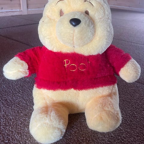 Ole Brumm bamse laget som ryggsekk, kjøpt i Disneyland. Puslespill med 250 brikker og to bøker om Ole Brumm. Småbøker på siste bilde er også med.