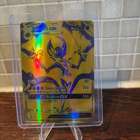 Pokémon GX samlekort med Darkrai og Charizard motiver. Kortene viser karakterene med holografiske og fargerike detaljer. Egnet for samlere og spillere av Pokémon kortspill.