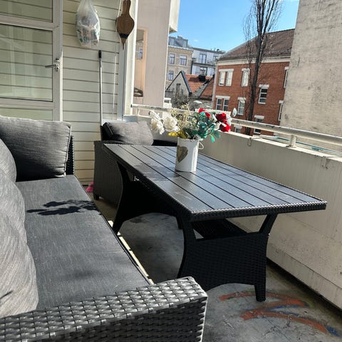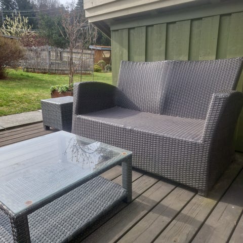 Stor og komfortabel hagesofa som har stått under tak. Sofaen er i svart farge og fremstår som nesten ubrukt.