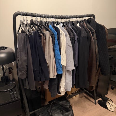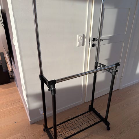 Flotte og pene klesstativ i hvit og metall. Begge har hjul på seg som kan skrues av.