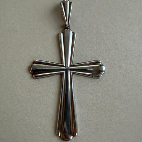 Stort sølvkors 830 S tilsalgs, Det er 5 cm høyt med festet og veier 3,5 gr. Selges for kr 600,-