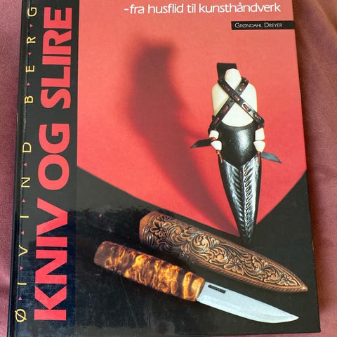 Grøndahl Dreier Øivind Berg - Kniv og Slire. Om kniver og slirer, inkludert materialer, utforming og tradisjonelt håndverk. Innbundet, 74 sider - utgitt av Grøndahl & Deøreyers forlag i 1991.