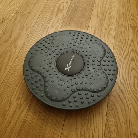 X-Fit Balance Board i grå farge. Brettet er designet for balanse- og stabilitetstrening, med en rund form og antiskli detaljer. Laget av holdbart materiale egnet for trening og rehabilitering.