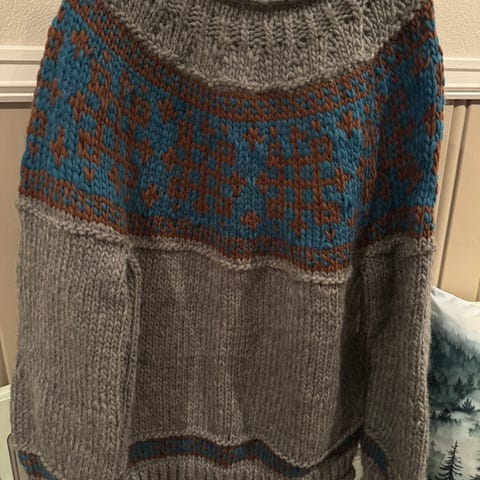 Større pinner og tykkere garn,god og varm!