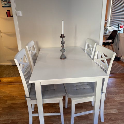 10 stk pent brukte spisestuestoler fra Møbelringen selges samlet. Nytt trekk i fjor. Selges samlet
